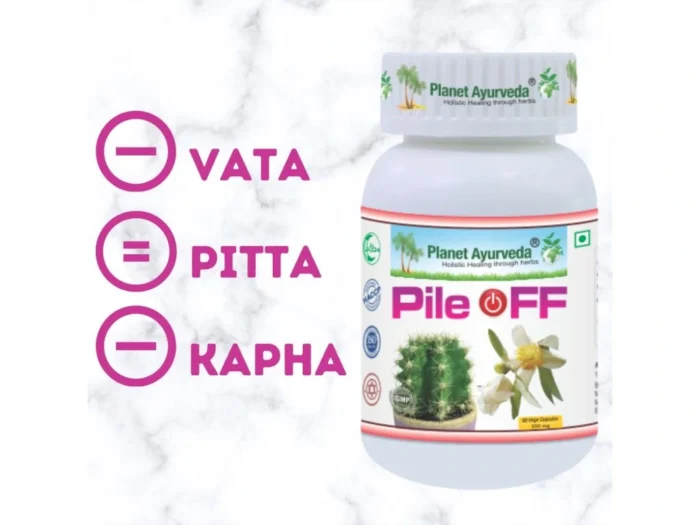 V ajurvéde sú hemoroidy (Arsha) spojené s nerovnováhou tráviaceho ohňa (Agni) a nahromadením dóš v oblasti konečníka. Pile Off harmonizuje Apana Vayu (podskupina Vaty zodpovedná za vylučovanie) a čistí krv od nadmernej horkosti (Pitta).