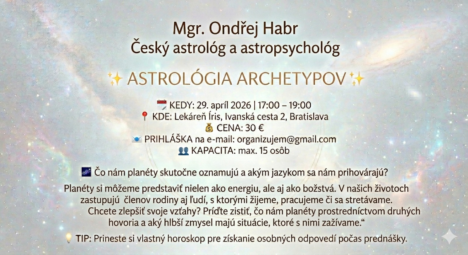 29.4.2026 o 17.00hod u nás v lekárni Íris.